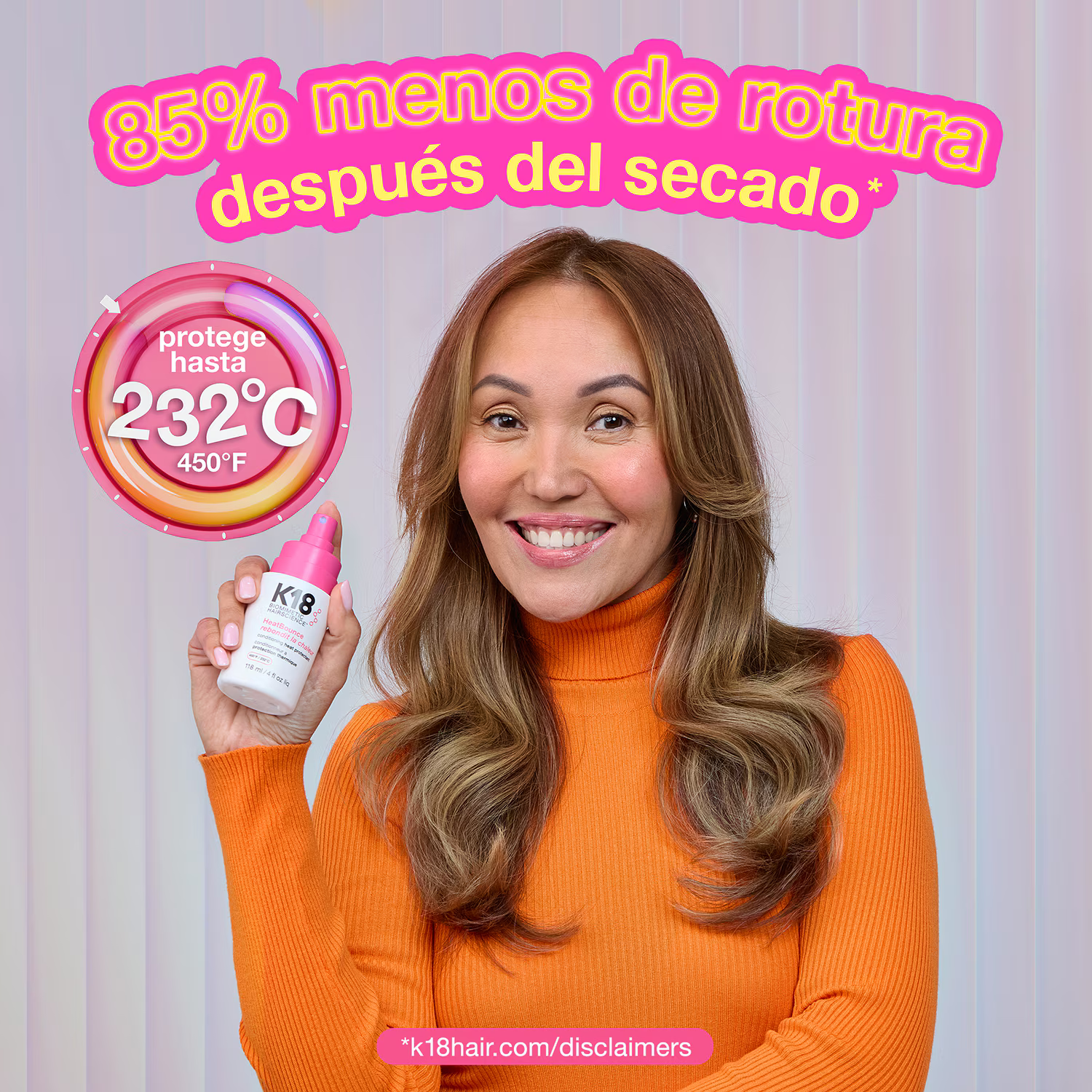 La tecnología de protección térmica resilicore™, patentada por K18, se inspira en proteínas resilientes presentes en la naturaleza, conocidas por su capacidad para soportar condiciones extremas. A diferencia de los protectores térmicos tradicionales que solo recubren la cutícula, el tamaño y la composición molecular de resilicore™ le permiten penetrar más profundamente que nunca*, en la corteza interna del cabello, donde puede producirse daño por calor, formando un escudo protector que fortalece desde el interior.